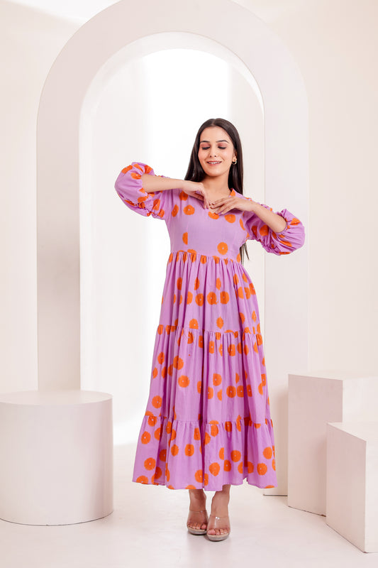 Lavinia Handblock Printed Flared Midi Dress