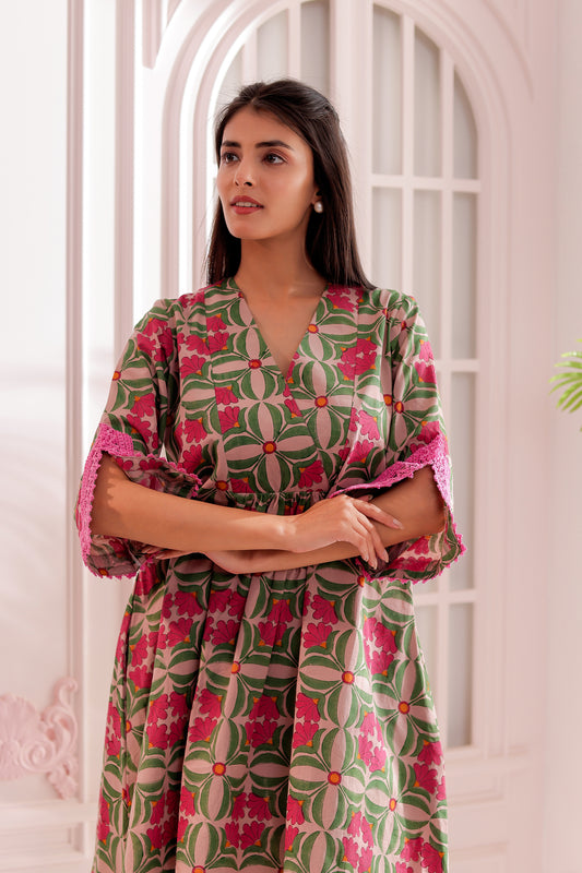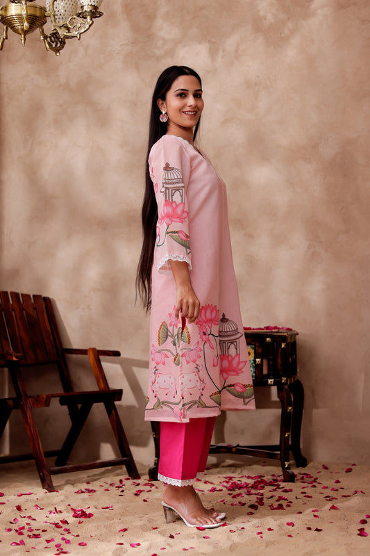 Pink Flora Kurta Co-ord Set