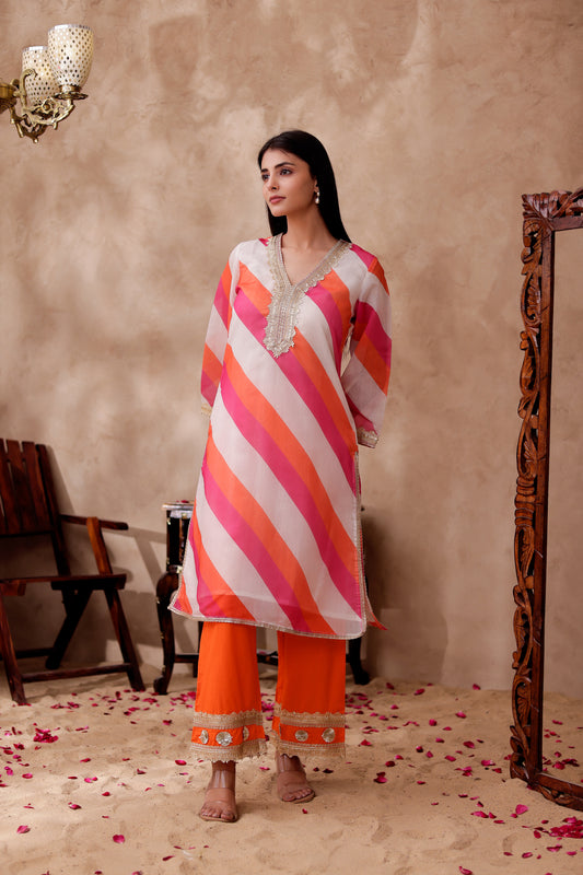 Chanderi Stripes Printed Kurta Co-ord Set