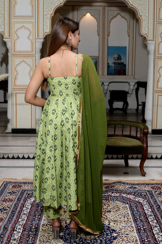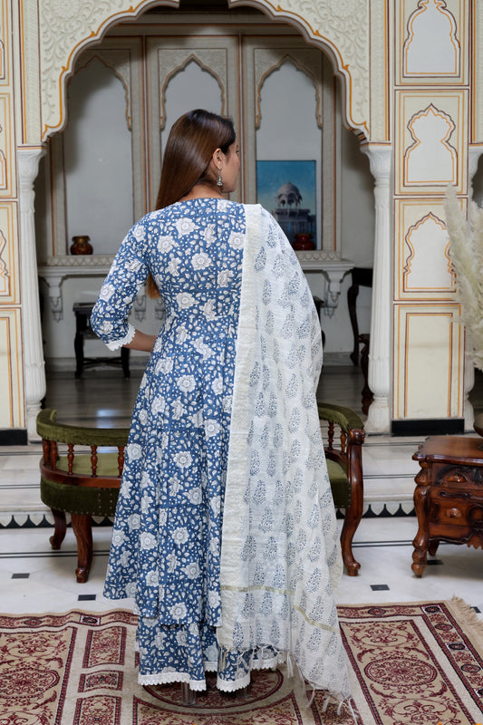 Indigo Handblock Anarkali Suit Set