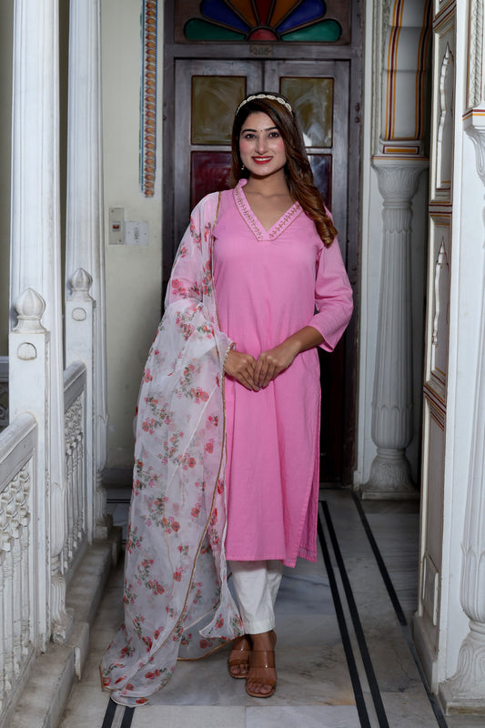 Pink Blossom Cotton Suit Set
