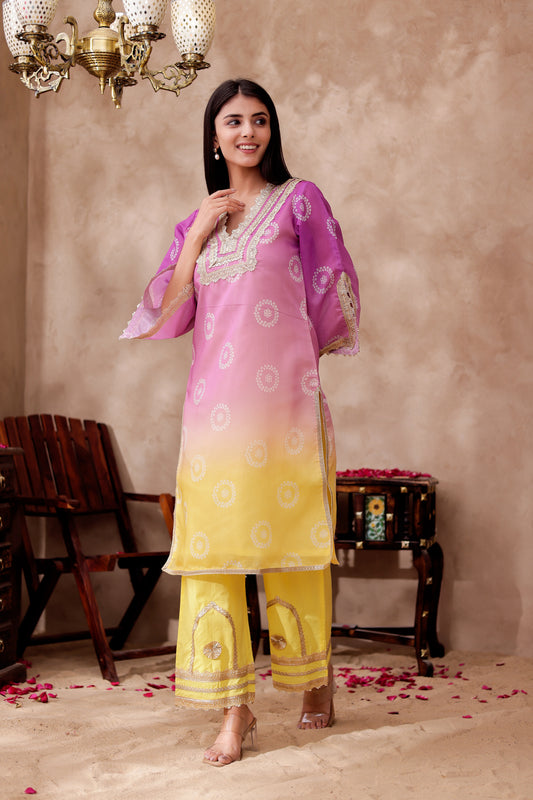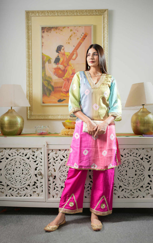 Chanderi Bhandani Printed Kurta Co-ord Set